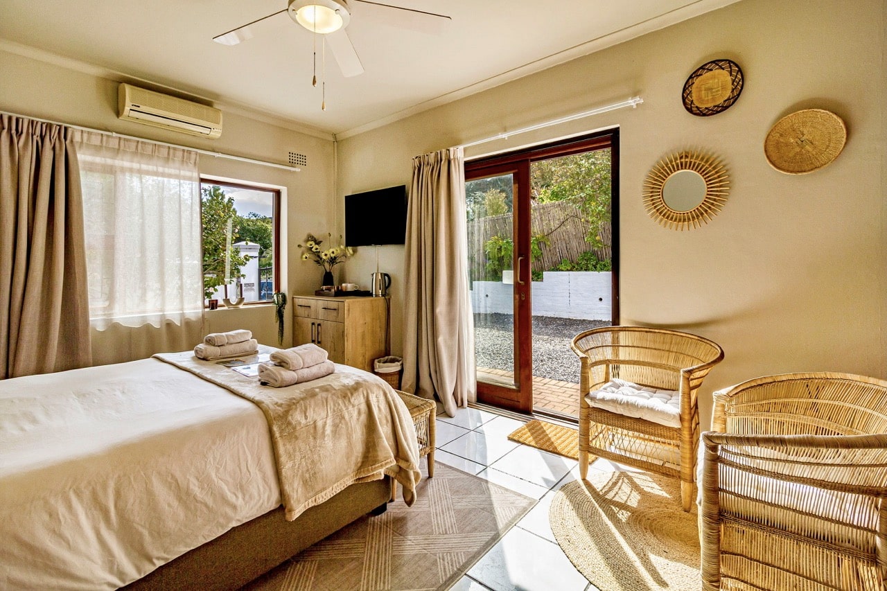 Double Room with garden view, Queen XL bed, small seating area in the room, bathroom with rain shower and complimentary toiletries, a TV with DSTV, mini fridge, basic coffee and tea facilities and your own cozy patio.